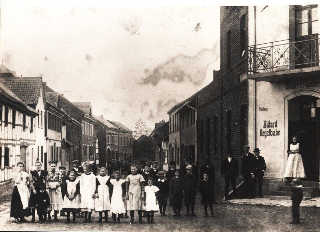 Vor dem Saal Winterscheidt, Blick in die Flinkengasse, heute Odinstraße