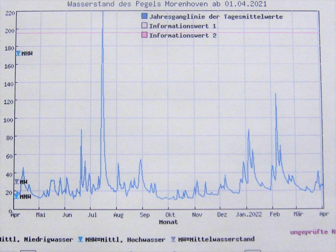 Gangliniendiagramm der Swist bei Morenhoven von April 2021 bis April 2022.